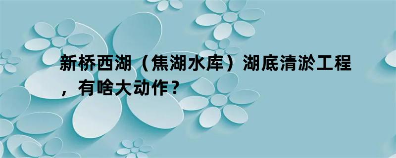 新桥西湖(焦湖水库)湖底清淤工程,有啥大动作?