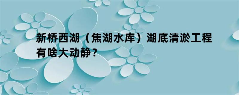 新桥西湖(焦湖水库)湖底清淤工程有啥大动静?
