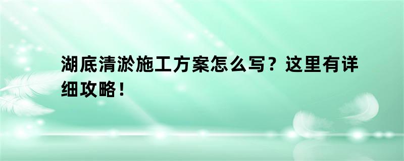 湖底清淤施工策划撰写全攻略