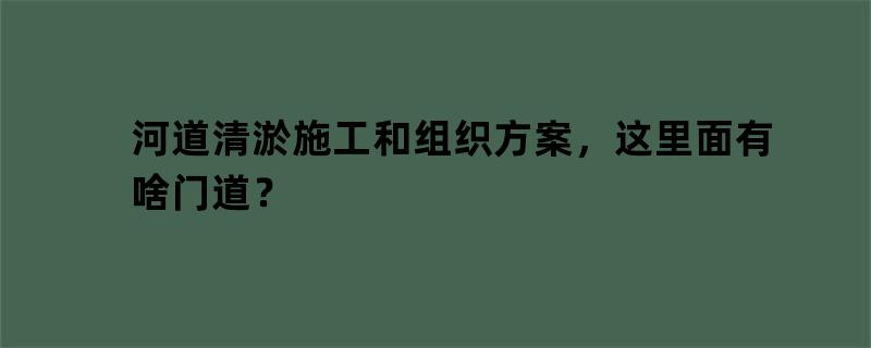 河道清淤施工和组织方案,这里面有啥门道?