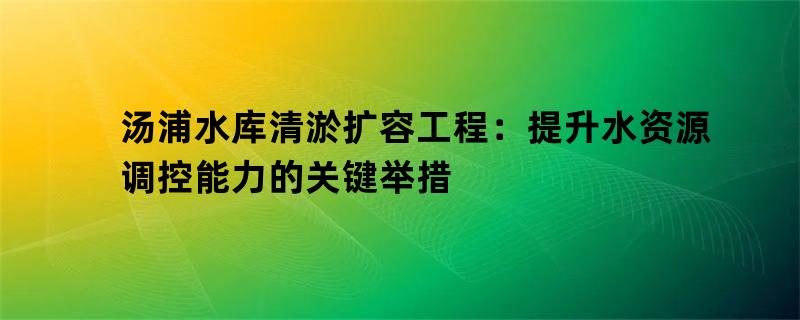 提升水资源调控能力的关键举措:汤浦水库清淤扩容工程的实践与启示