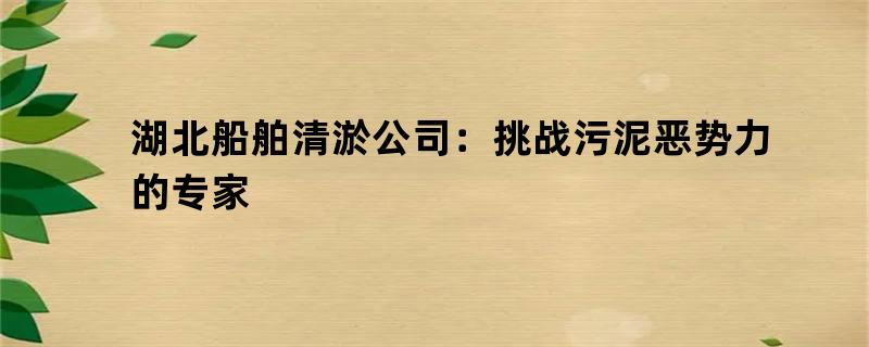 湖北船舶清淤公司是一家专注于解决水域清淤问题的企业,挑战着污泥恶势力,为环境保护事业贡献力量。本文从多个方面对这家公司进行深入分析,介绍了他们的技术和服务,并探讨了他们的使命和挑战。
