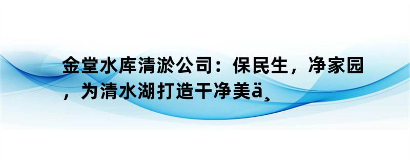 金堂水库清淤公司:保民生,净家园,为清水湖打造干净美丽家园