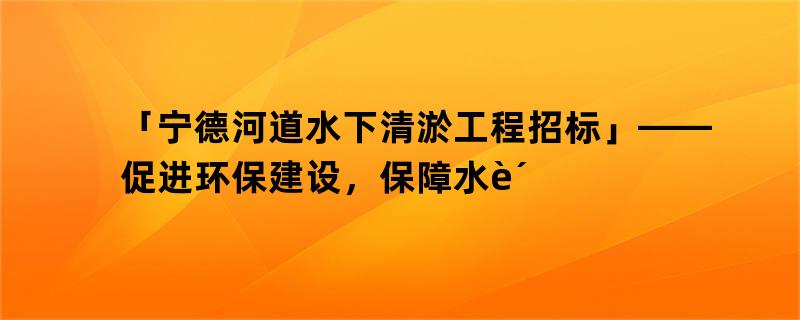 「宁德河道水下清淤工程招标」——促进环保建设,保障水质安全!