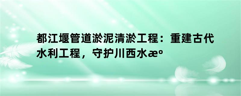 都江堰是中国著名的水利工程,经过两千多年的历史沉淀,已经出现了淤泥问题。有关部门发现,这些淤泥对水利工程的运行和水源生态保护都造成了严重的影响。因此,为了恢复都江堰的功能、保护川西水源生态,都江堰管道淤泥清淤工程得到了人们的高度关注。