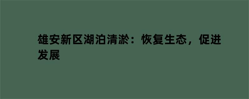 雄安新区湖泊清淤:恢复生态,促进发展