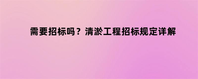 需要招标吗?清淤工程招标规定详解
