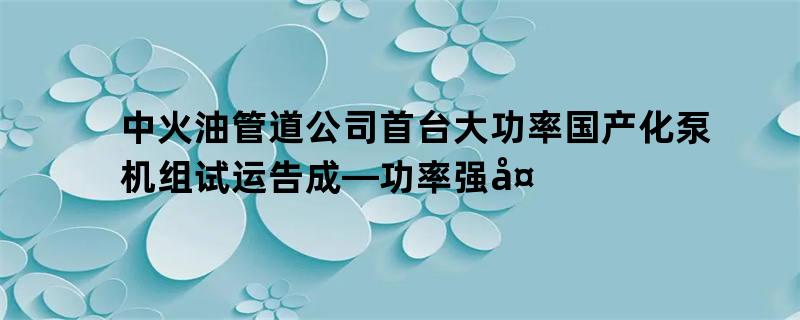 此次铁秦5号泵机组的试运告捷,象征着管道公司大型首台高效输油泵的国产化试验告捷,杀青了输油泵国产化的主意,中火油管道公司首台大功率国产化泵确保了国度能源太平,消浸修复、运转和爱护本钱,杀青了互惠双赢。