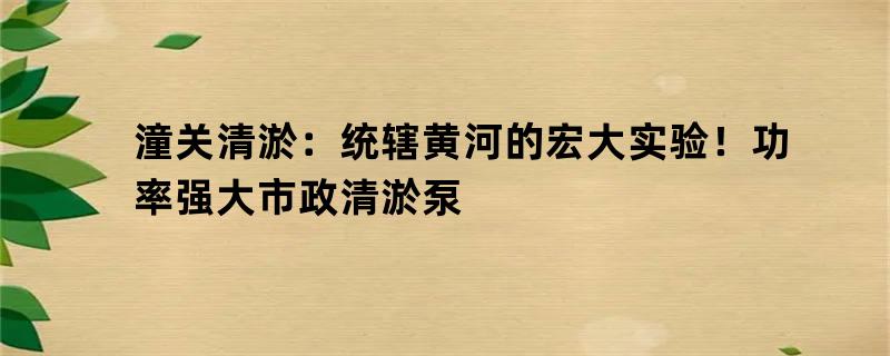 潼关清淤:统辖黄河的宏大实验!功率强大市政清淤泵