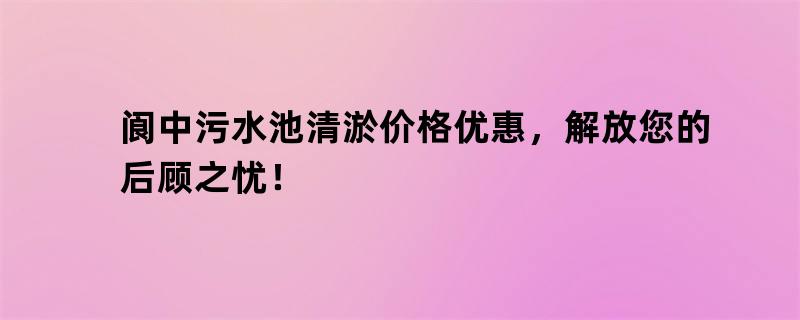 阆中污水池清淤价格优惠,是解放您后顾之忧的好选择。本文将为您介绍该优惠政策,让您了解更多相关信息。
