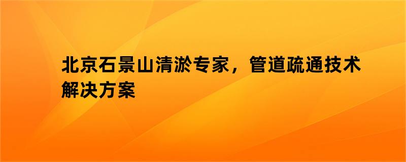 北京石景山清淤专家,管道疏通技术解决方案