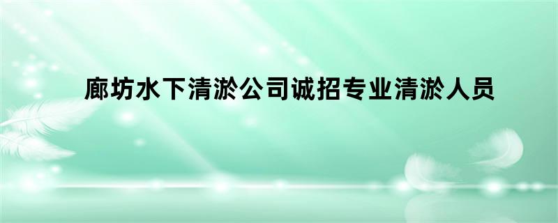 廊坊水下清淤公司诚招专业清淤人员