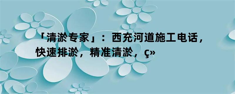清淤是保护水环境的重要工作,针对西充河的水状况,清淤迫在眉睫。本文以「清淤专家」:西充河道施工电话,快速排淤,精准清淤,维护生态环境!为中心,展开详细的专业分析,为读者提供深入了解这一话题的机会。
