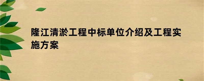 隆江清淤工程中标单位介绍及工程实施方案