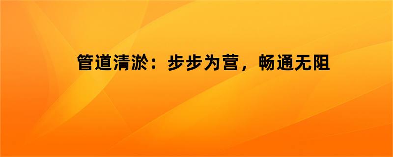 管道清淤:步步为营,畅通无阻
