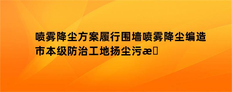 喷雾降尘方案履行围墙喷雾降尘编造市本级防治工地扬尘污染有新招