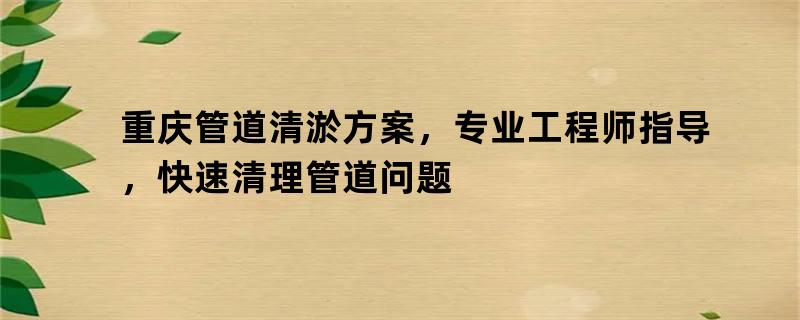 本文从专业工程师的指导出发,介绍了重庆管道清淤方案,并着重分析了快速清理管道问题。读者通过本文可以掌握一些背景信息,进一步了解管道清淤方案的实践操作。