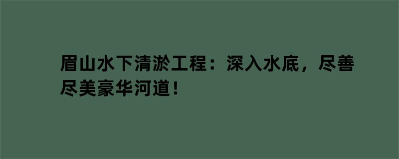 眉山水下清淤工程:深入水底,尽善尽美豪华河道!