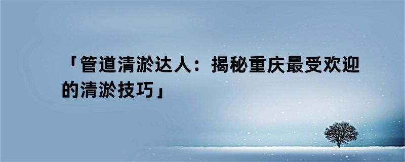 「管道清淤达人:揭秘重庆最受欢迎的清淤技巧」