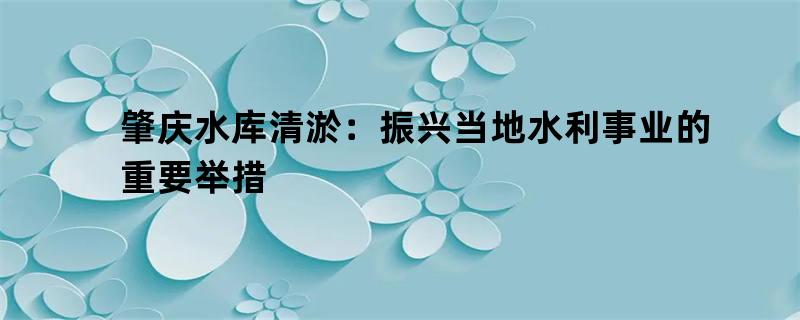 肇庆水库清淤:振兴当地水利事业的重要举措