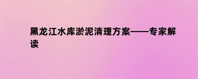 黑龙江水库淤泥清理方案——专家解读