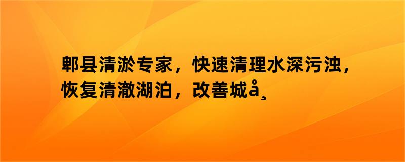 郫县清淤专家,快速清理水深污浊,恢复清澈湖泊,改善城市环境,提高水质标准
