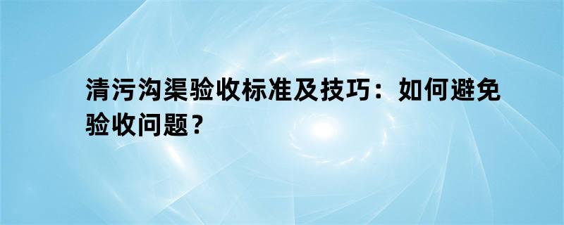 清污沟渠验收标准及技巧:如何避免验收问题?