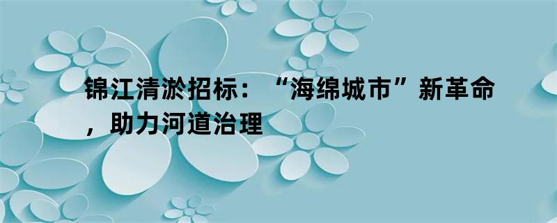 锦江清淤招标:“海绵城市”新革命,助力河道治理