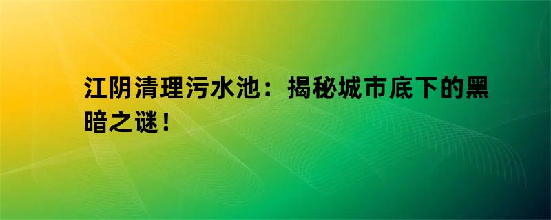 江阴地下的污水池是一个充满神秘感的地方。这些底下隐藏着大量的废物、泥沙和有害物质,需要定期进行清理。,除了表面上看到的脏乱和恶臭外,这些污水池还隐藏着许多深度问题。