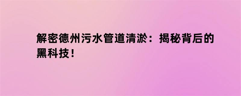 解密德州污水管道清淤:揭秘背后的黑科技!