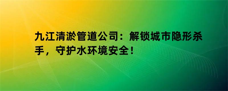 九江清淤管道公司:解锁城市隐形杀手,守护水环境安全!