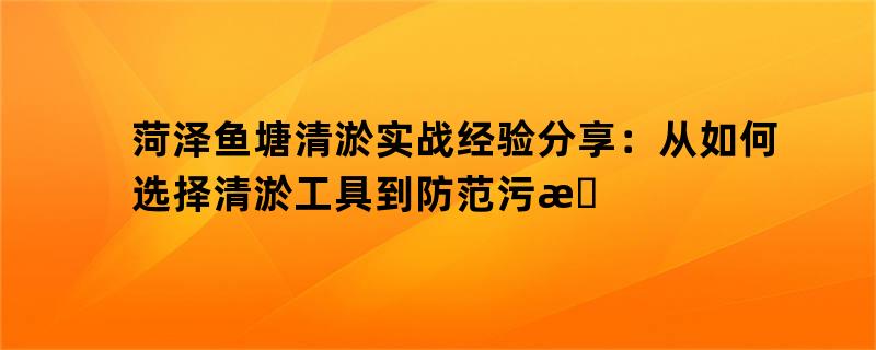 本文将介绍菏泽鱼塘清淤实战经验分享:从如何选择清淤工具到防范污染,全方位解读。清淤是鱼塘养殖过程中非常重要的环节,但也容易被忽视。我们将从清淤工具的选择、清淤施工过程、污染防控等多个方面深入探讨。