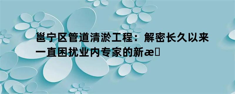 邕宁区管道清淤工程:解密长久以来一直困扰业内专家的新成果