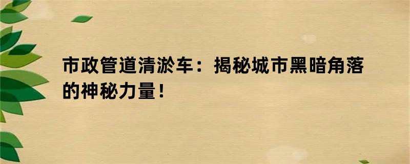 市政管道清淤车:揭秘城市黑暗角落的神秘力量!