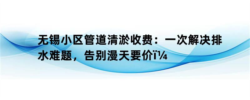 无锡小区管道清淤收费:一次解决排水难题,告别漫天要价!
