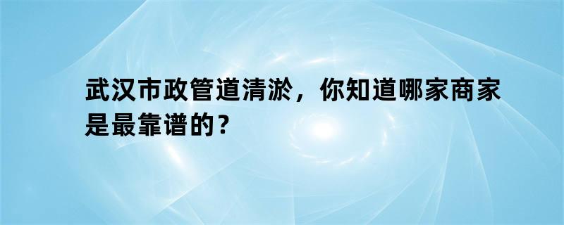 武汉市政管道清淤,你知道哪家商家是最靠谱的?