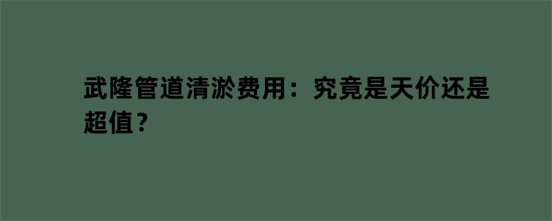 武隆管道清淤费用:天价还是超值?