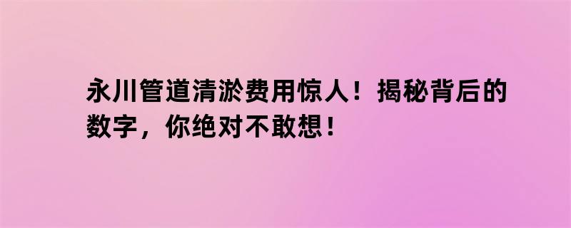 永川管道清淤费用惊人!揭秘背后的数字,你绝对不敢想!