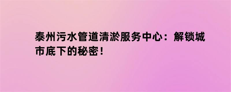 泰州污水管道清淤服务中心:解锁城市底下的秘密!
