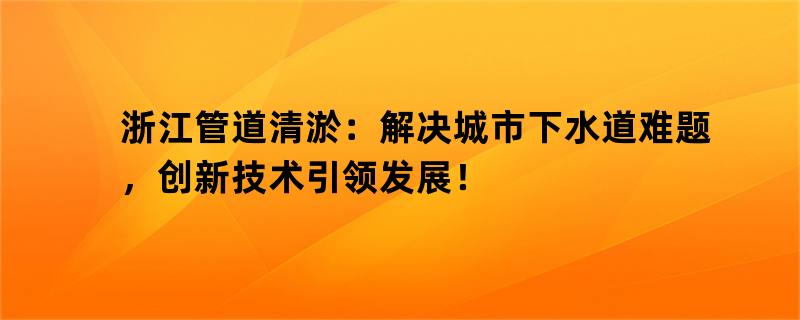 浙江管道清淤:解决城市下水道难题,创新技术引领发展!
