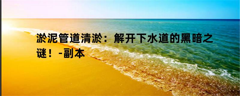 淤泥管道清淤:解开下水道的黑暗之谜! - 副本
