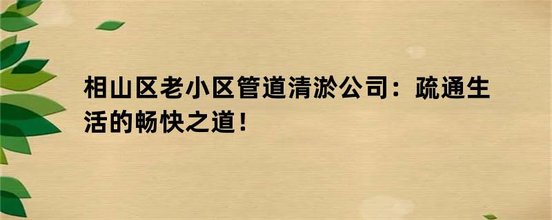 相山区老小区管道清淤公司:疏通生活的畅快之道!
