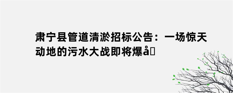 肃宁县管道清淤招标公告:一场惊天动地的污水大战即将爆发!