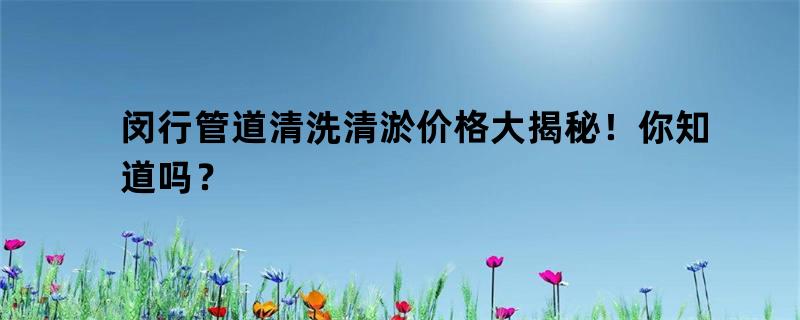 闵行管道清洗清淤价格大揭秘!你知道吗?