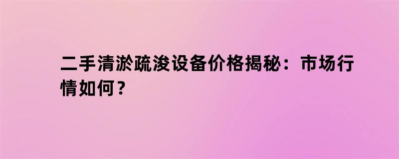 二手清淤疏浚设备价格揭秘:市场行情如何?