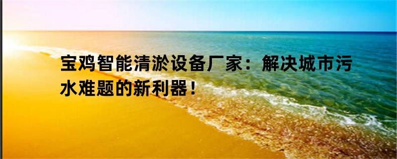宝鸡智能清淤设备厂家:解决城市污水难题的新利器!