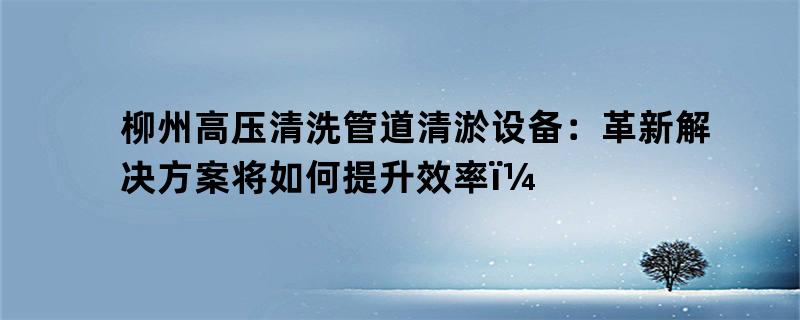 柳州高压清洗管道清淤设备:革新解决方案将如何提升效率?