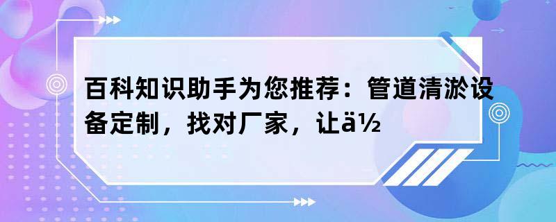 百科知识助手为您推荐:管道清淤设备定制,找对厂家,让你的管道畅通无阻!
