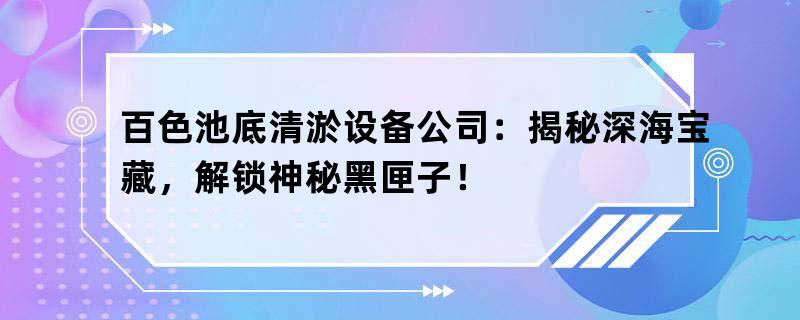百色池底清淤设备公司:揭秘深海宝藏,解锁神秘黑匣子!
