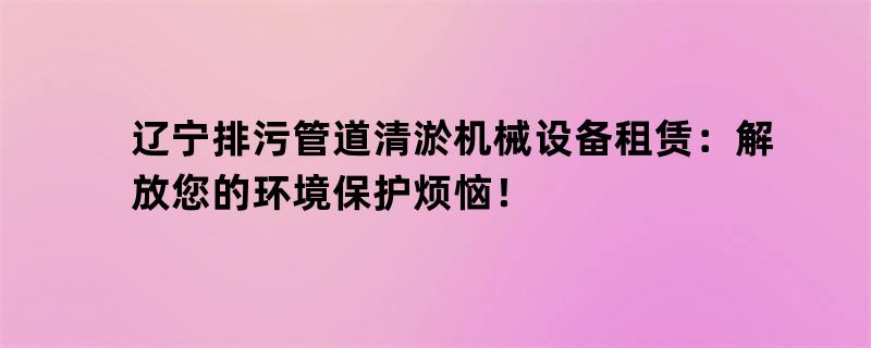 辽宁排污管道清淤机械设备租赁:解放您的环境保护烦恼!